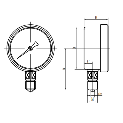 | YQ100- ⅰ | 90 | 48 | 15 | φ 100 | / | / | φ 6 | M20 × 1.5 |